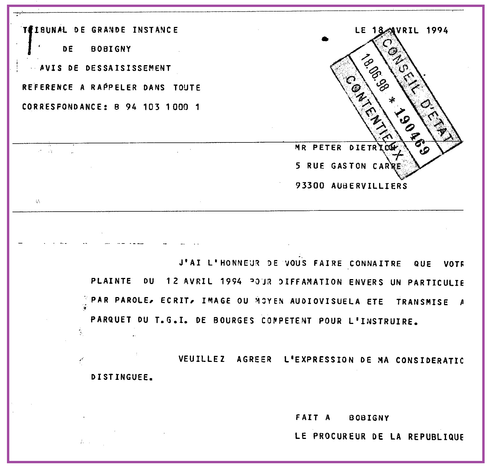 Reply-To: peter dietrich peter.dietrich@sfr.fr To: <Contact.Ca-versailles@justice.fr>, <csm@justice.fr>, <premier-ministre@cab.pm.gouv.fr>, <president@assemblee-nationale.fr>, <presidence@senat.fr>, s.avocat.citoyen@gmail.com>,<syndicat.magistrature@wanadoo.fr>,