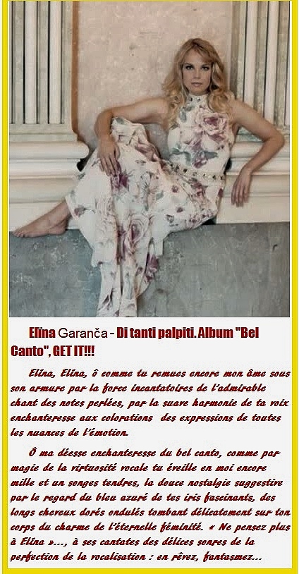 Elina Garanča, ma providentielle déesse enchanteresse du bel canto. » Elïna Garanča – Di tanti palpiti. Album ‘Bel Canto’, GET IT.