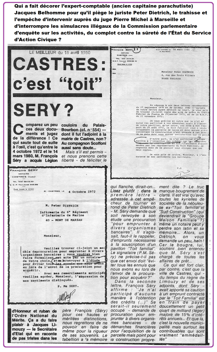 Crimes contre l'humanité, Haute Trahison, Politique, Complot, Escroqueries, Politique, Justice, Avocats, Notaires, Psychiatrie, Trucages, Service d'Action Civique, Rotary Club