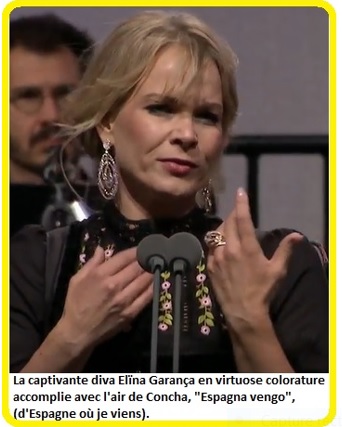Die fesselnde Diva Elina Garanča als vollendete virtuose Koloratur, die mit dem Lied der Concha « España vengo » (aus Spanien, wo ich herkomme).
