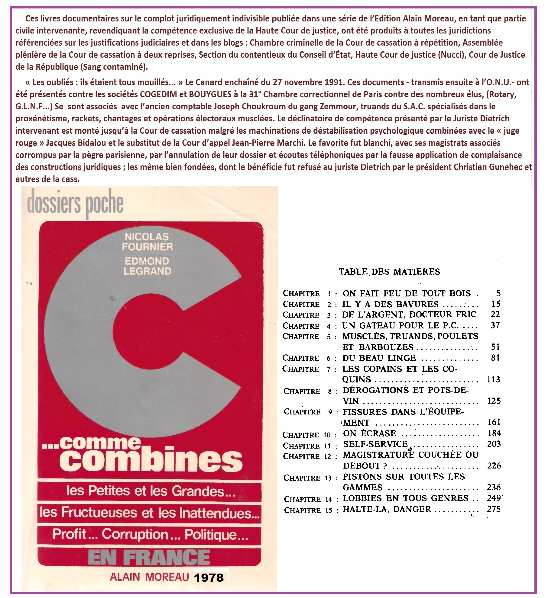 Récapitulation sommaire de moi, M. Peter Dietrich, juriste DEA, criminologie, sciences pénales, de quelques échantillons marquants des turpitudes de la criminalité politico-judiciaire et tripotages des procédures des mascarades judiciaires dans le cadre du complot international déroulés depuis la saisine par lui des faits d’ONU dans les années 1983/84.