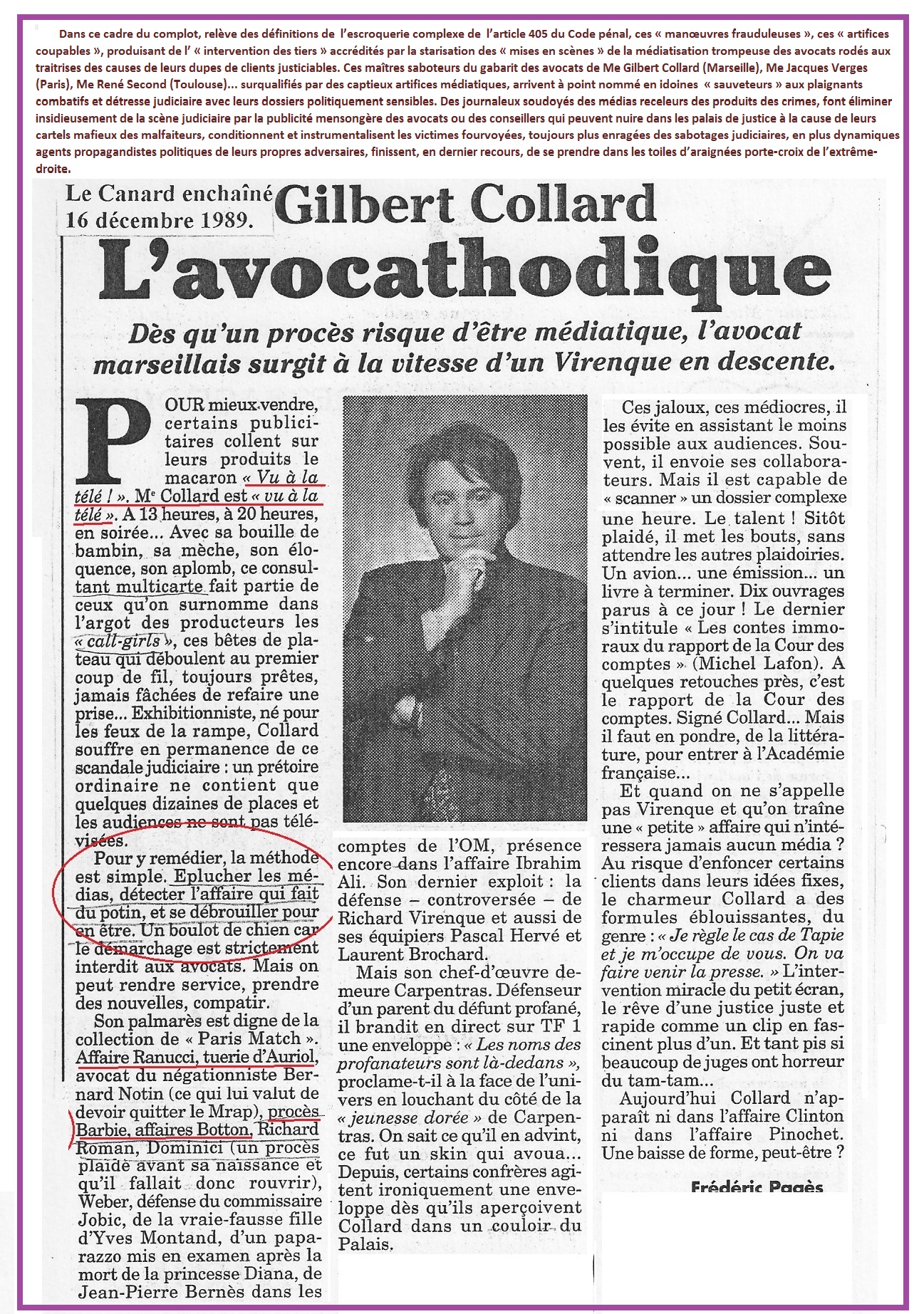 La connexité juridique et judiciaire de l’article 203 c. pr. pén., notamment dans le crime du complot, nous conduit en ligne directe à Toulon vers l’affaire manipulée Verges… Pardon « Omar m’a tuer », à présent rebaptisée « Omar m’a pousser. Les intouchables », notamment par le dénominateur commun : Maître Jacques Verges, le plus redoutable des truqueurs félons. Mi-page 7.
