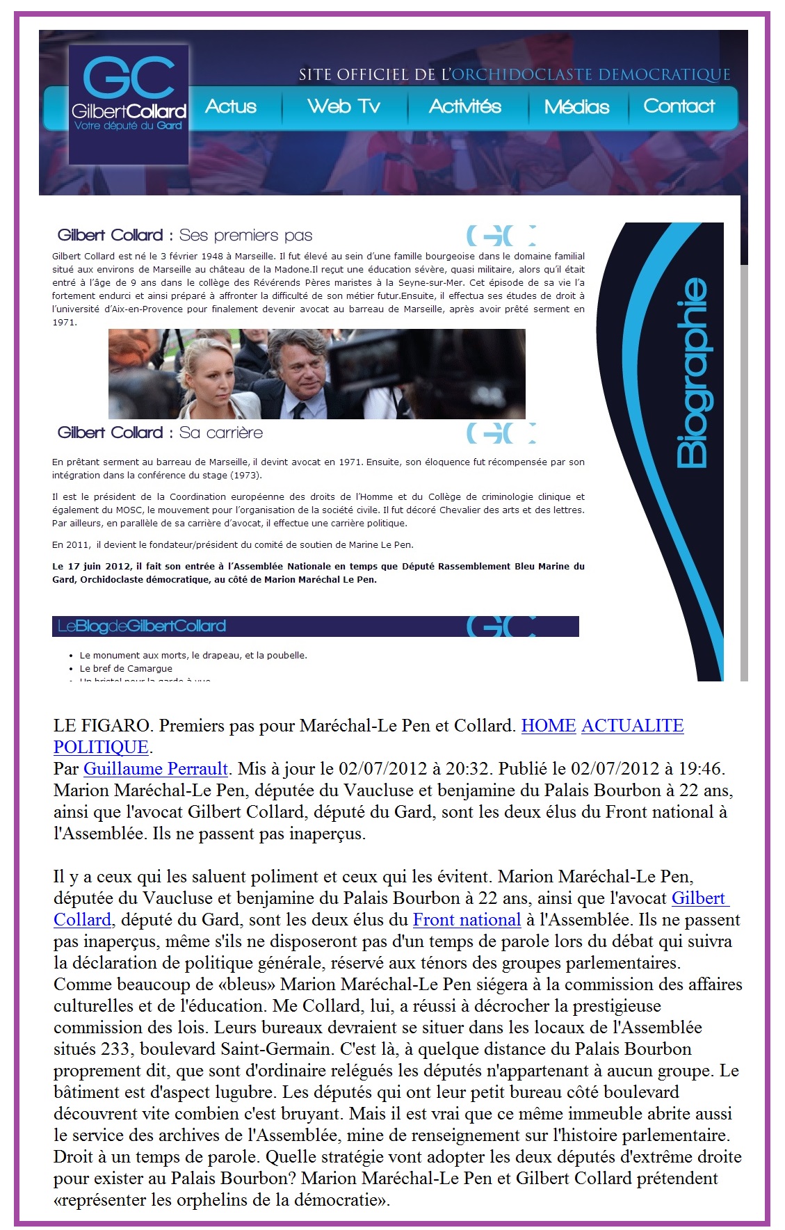 Mais d’abord, selon la nouvelle logique acquis de l’élargissement de mes études, les Nazis et sectes du catholicisme intégristes comptaient par la capture me rendre docile, soumettre mon intelligence et savoir-faire à leurs visions d’hallucinés par des traitements psychiatriques appropriés. En même temps, ils ont récupéré mon image de marque par des personnes interposées. Un gourou alors méconnu des associations de défense des victimes, trompé, je l’ai mis même en vedette sur une page de mes blogs et avec derrière lui tout le Front national des Nazis avec son instigatrice, l’avocate Marine Le Pen.