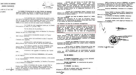 Mais à Bordeaux, ce n’est pas plus brillant. C’est là où je fus séquestré et spolié de mes biens -en toute impunité- en raison de la revendication de la Haute Cour de justice (p. 1+2 du blog), évincé ensuite de la procédure truquée à l’identique de l’affaire contre l’ancien ministre Maurice Papon.