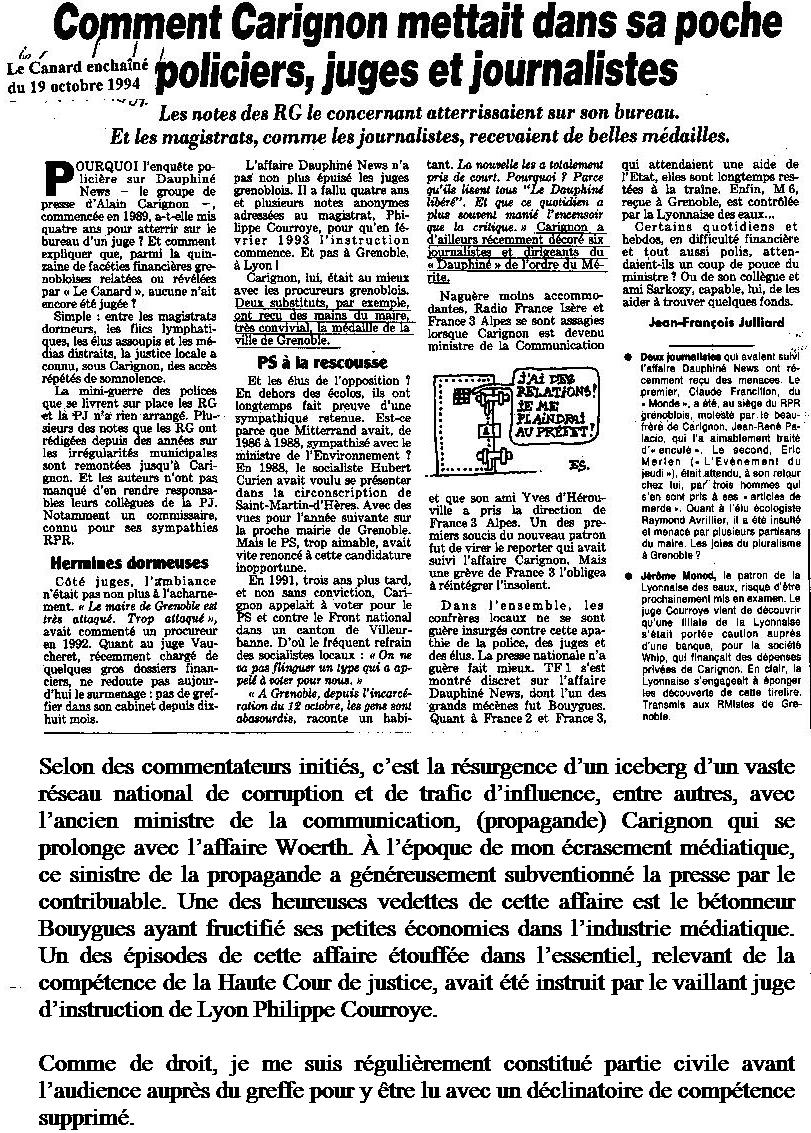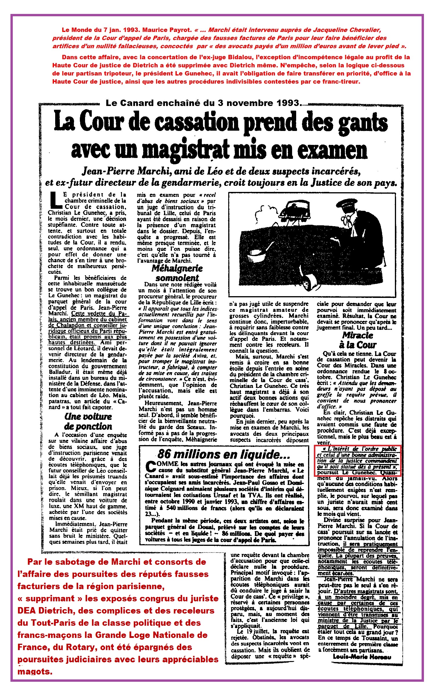 Installé dans une minable turne à Aubervilliers, ce juge cachotier Bidalou me collant à la peau comme morpion, établissait son officine à peu près à cinq cent mètres de ma porte. Avec des avocats félon, dont Me William Bourdon, (affidé de Eva Joly), à partir du restaurant Le Piccadilly, le cafard défroqué entreprit de récupérer et de saboter en douce et partout en France toutes mes actions judiciaires sous l’incitation et protéction « de la bande de Bobigny », des magistrats voyageurs sectaires de ce tribunal. Avec le renfort de ses sournoiseries morbides, ma vie fut transformée en enfer par les ministres de l’Intérieur et leurs spires barbouzes, ripoux et mafiosi, dont ceux de Charles Pasqua déjà illustrés dans la pose des micros dans la rédaction du Le Canard enchaîné.