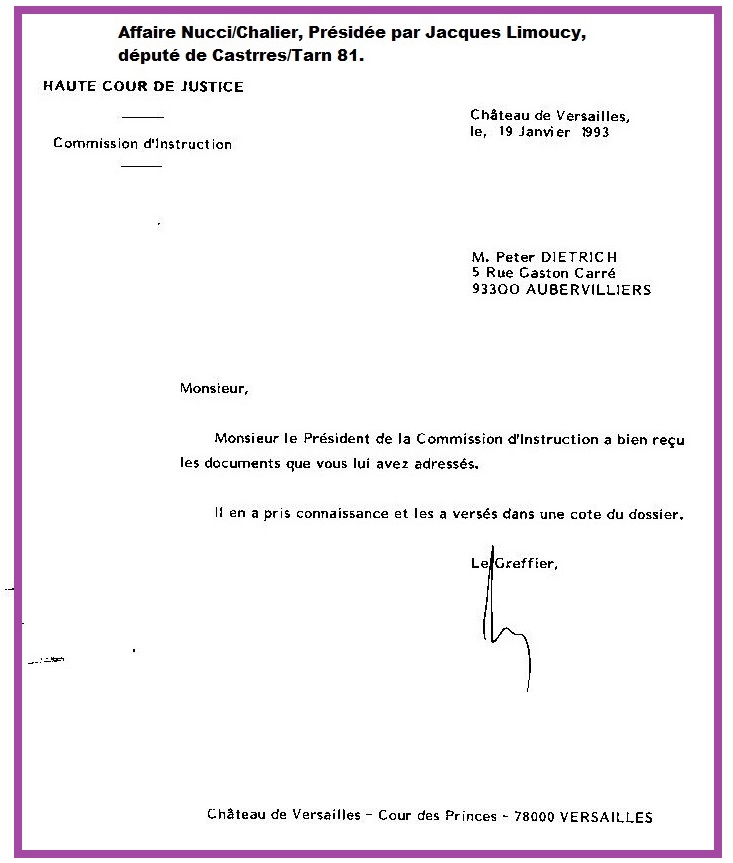 Lorsque le 29 janvier 1981, Mitterrand ratifia le « Pacte relatif aux droits civils et politiques » de l’ONU, l’ordonnance régissant la procédure de l’information et du jugement, et surtout, de la saisine restrictive de la Haute Cour de justice, est devenue caduque pour céder le rang à la procédure pénale égalitaire du droit commun. Sont dorénavant admises les constitutions de partie civile des victimes, leur autorisant, à eux aussi, de récuser des juges affiliés à des sociétés secrètes ou discrètes, ou à des clubs et sectes des faisans dorées de la fricoto-politicailleries, des favorites pistonnés, camés et tarés du népotisme, du clanisme mafieux avec leurs comptes secrétés crédités par les trafiquants intouchables… (La procédure de la C.J.R. de substitution est constitutionnellement illégale. Art. 55).