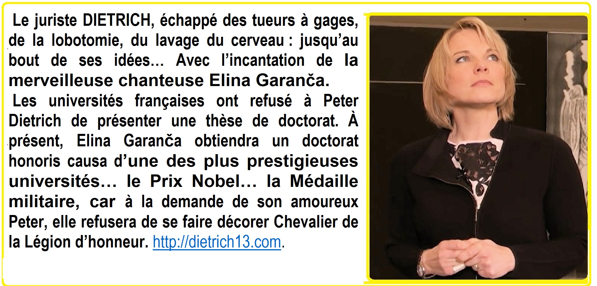 Désolé Madame. Il m’est toujours rendu impossible de compléter ce blog, (Dietrich13, sans « P »), par des preuves factuelles de mon assassinat déjoué, et, la déclaration de décès à l’Administration suisse, dénoncée quelques années plus tard par un ami. Preuves édifiantes, incontestées, « supprimées » par la justice française avec son présentateur en raison de son importance internationale toujours plus explosive dans des affaires des trucages des procédures des crimes contre l’humanité (p. 4) en corrélation avec les escroqueries monumentales du banqueroute frauduleuse gigantesques dissimulées derrière le terme crise. Page 2 des blogs. Échantillons ci-dessous de la page 1.