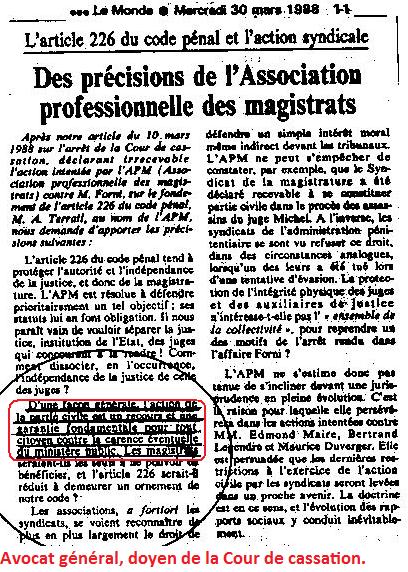 Avec la Déclaration des droits de l’homme et du citoyen de 1789 en Préambule des Constitutions depuis 1945, la situation légale n’existait plus en France, comme le témoignaient tous les révoltants scandales étouffés. (L’inégalité judiciaire combinée est due à l’anti-constitualité de l’organisation judiciaire de l’impérialisme de Napoléon I, totalement inconciliable avec les principes démocratiques de la Déclaration des droits de l’homme et du citoyen de 1789. (Les détails sont expliqués).
