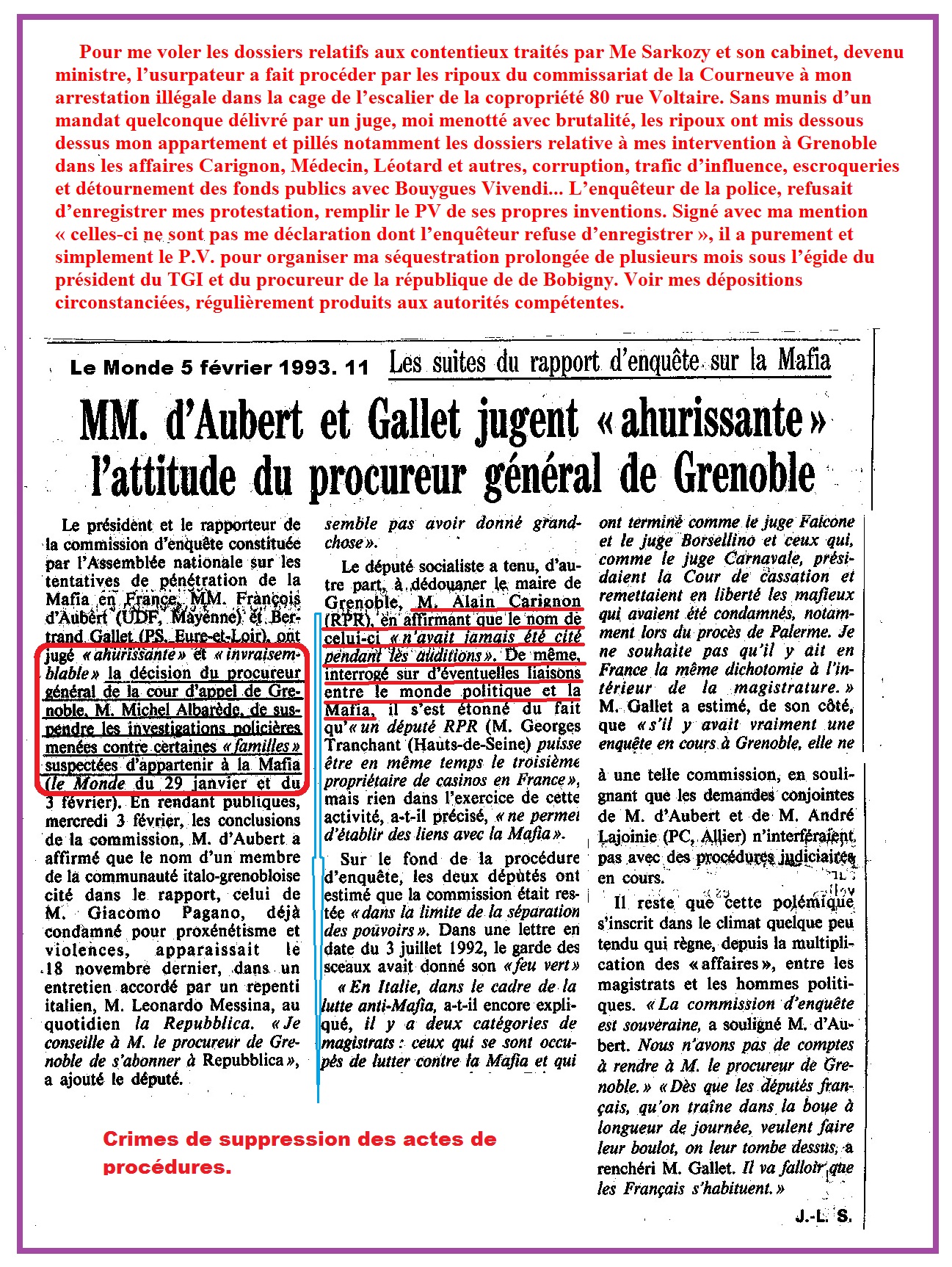 5° Attentat à la Constitution: Notaires-Juges-Avocats Connexion des escrocs et des faussaires de la Légion d’honneur. » Carignon Mafia Grenoble