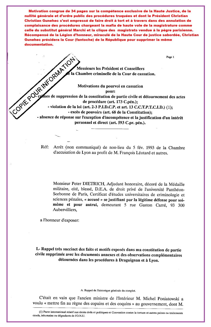5° Attentat à la Constitution: Notaires-Juges-Avocats Connexion des escrocs et des faussaires de la Légion d’honneur. » Léo motif cass Lyon