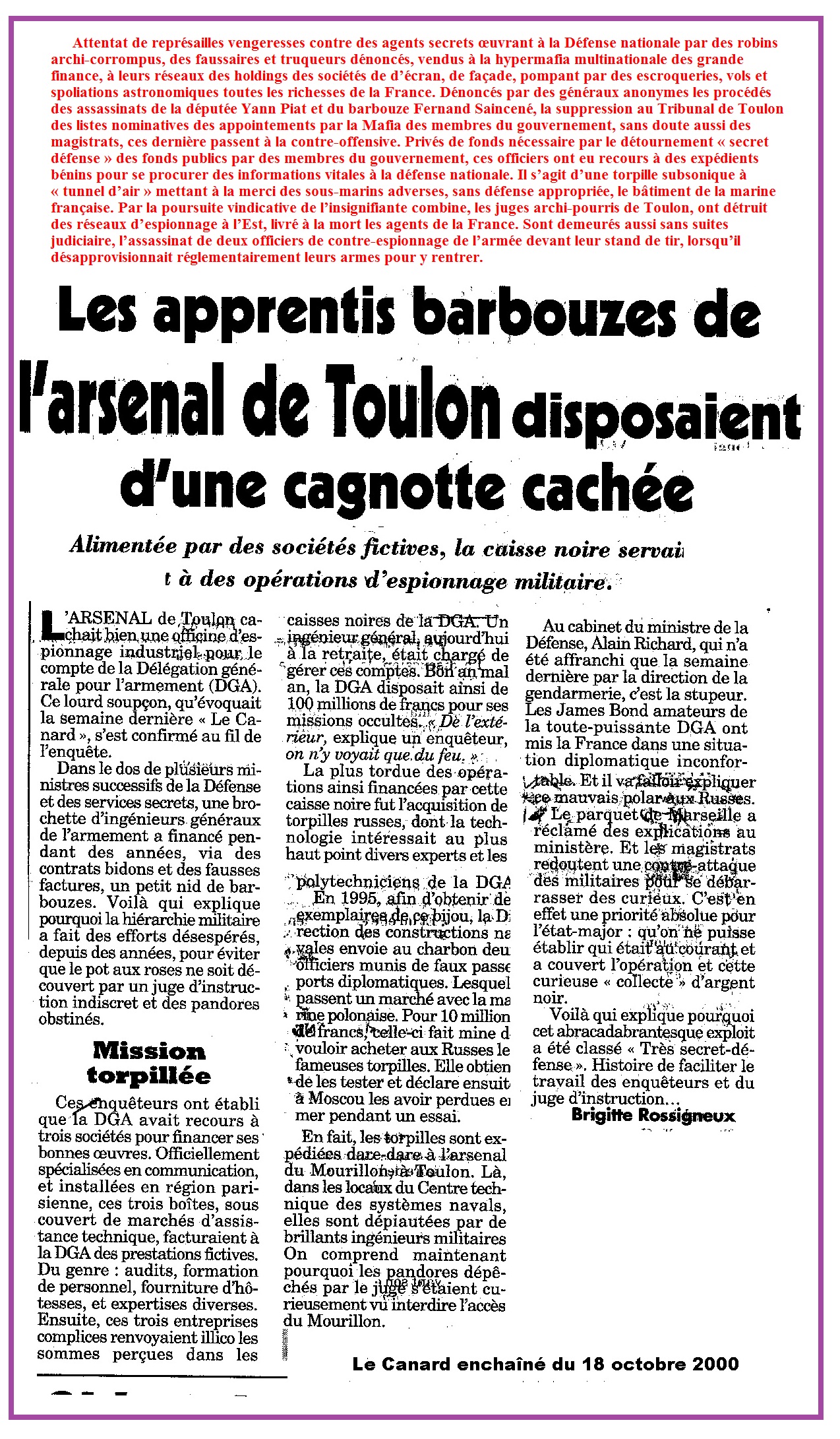 5° Attentat à la Constitution: Notaires-Juges-Avocats Connexion des escrocs et des faussaires de la Légion d’honneur. » Torpilles espions inculpés Toulon